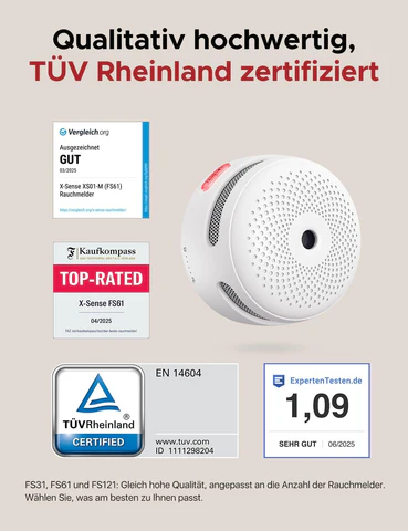 Das Set besteht aus zwölf hochwertigen Funkrauchmeldern X-Sense XS-01-M sowie einer dazugehörigen Basisstation X-Sense Pro Base Station SBS50. Die Rauchmelder arbeiten mit modernster optischer Sensor-Technologie, die zuverlässig auch sichtbaren Rauch frühzeitig erkennt. Sie verfügen über eine Batterielaufzeit von bis zu 10 Jahren, wodurch ein seltener Batteriewechsel gewährleistet ist. Die akustische Alarmierung erfolgt mit einer Lautstärke von 85 dB, sodass der Alarm auch in größeren Wohnräumen gut wahrnehmbar ist.
